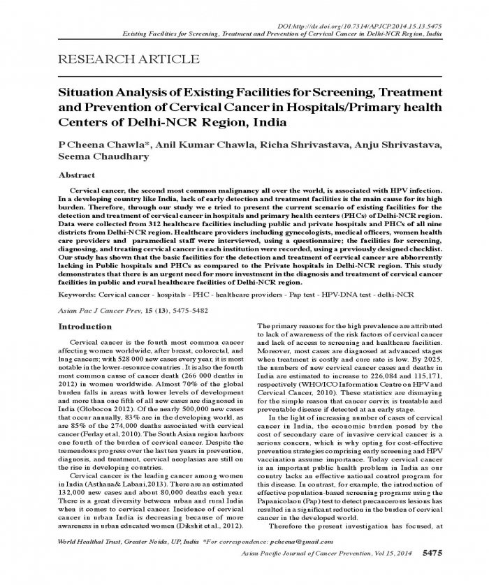 Situation Analysis of Existing Facitites for Screening & Treatment of Cervical cancer
